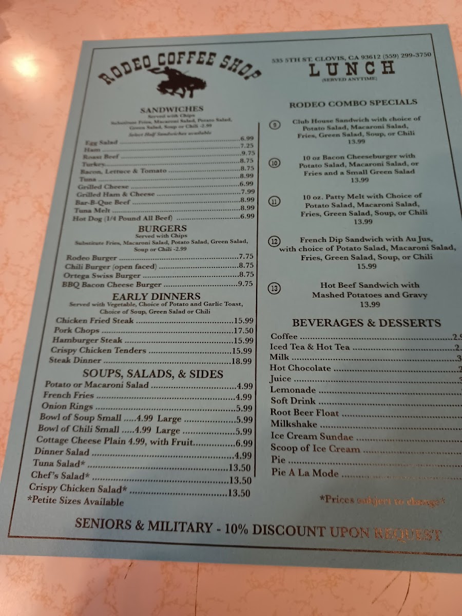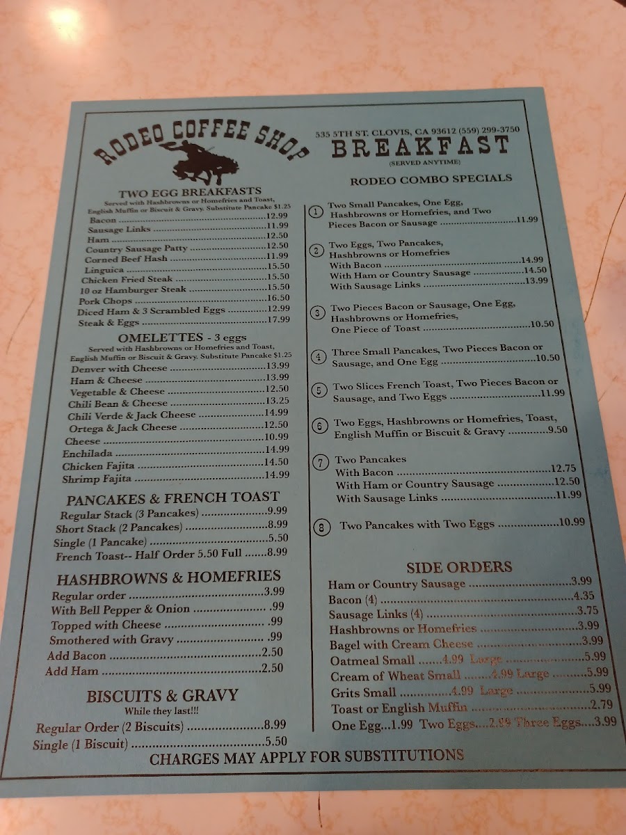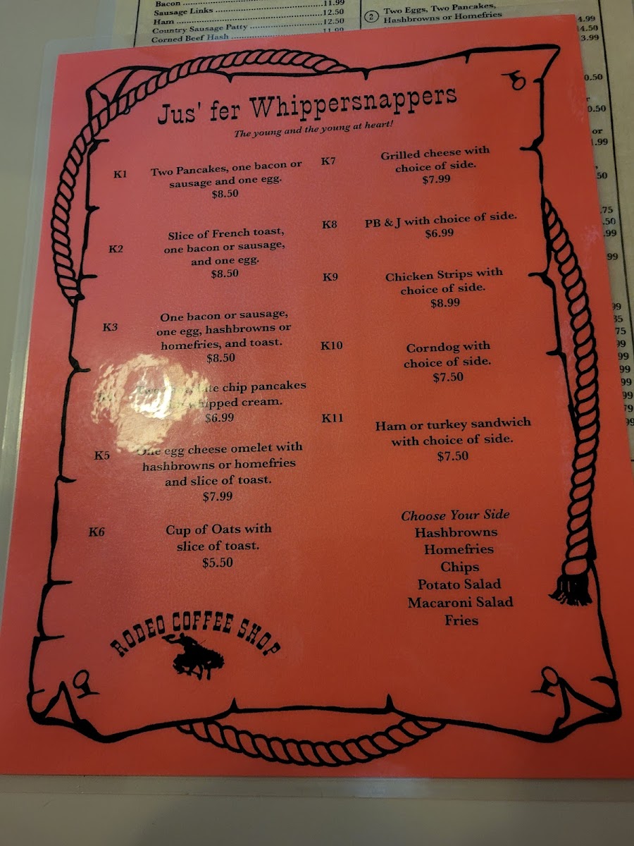 Rodeo Coffee Shop Menu