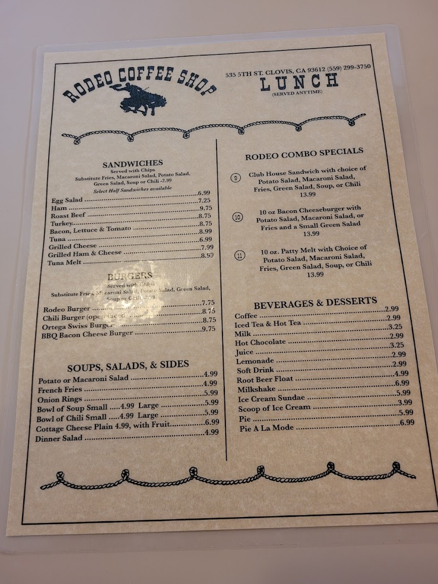 Overall, the menu matches the cozy, rustic environment of Rodeo Coffee Shop—inviting guests to enjoy generous portions in a warm, welcoming space where the pace slows down just enough to savor everyday moments.