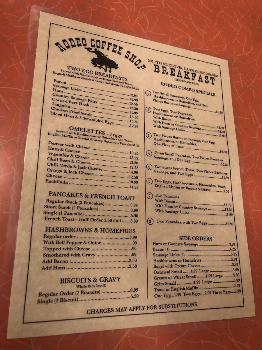 Rodeo Coffee Shop offers a straightforward, comforting menu typical of a longtime neighborhood breakfast spot. The focus is on hearty classics and familiar flavors, with plenty of options to satisfy morning cravings or midday appetites. Whether you’re starting your day with a rich coffee or settling in for a filling plate, the menu reflects a relaxed, unpretentious atmosphere where comfort is key.